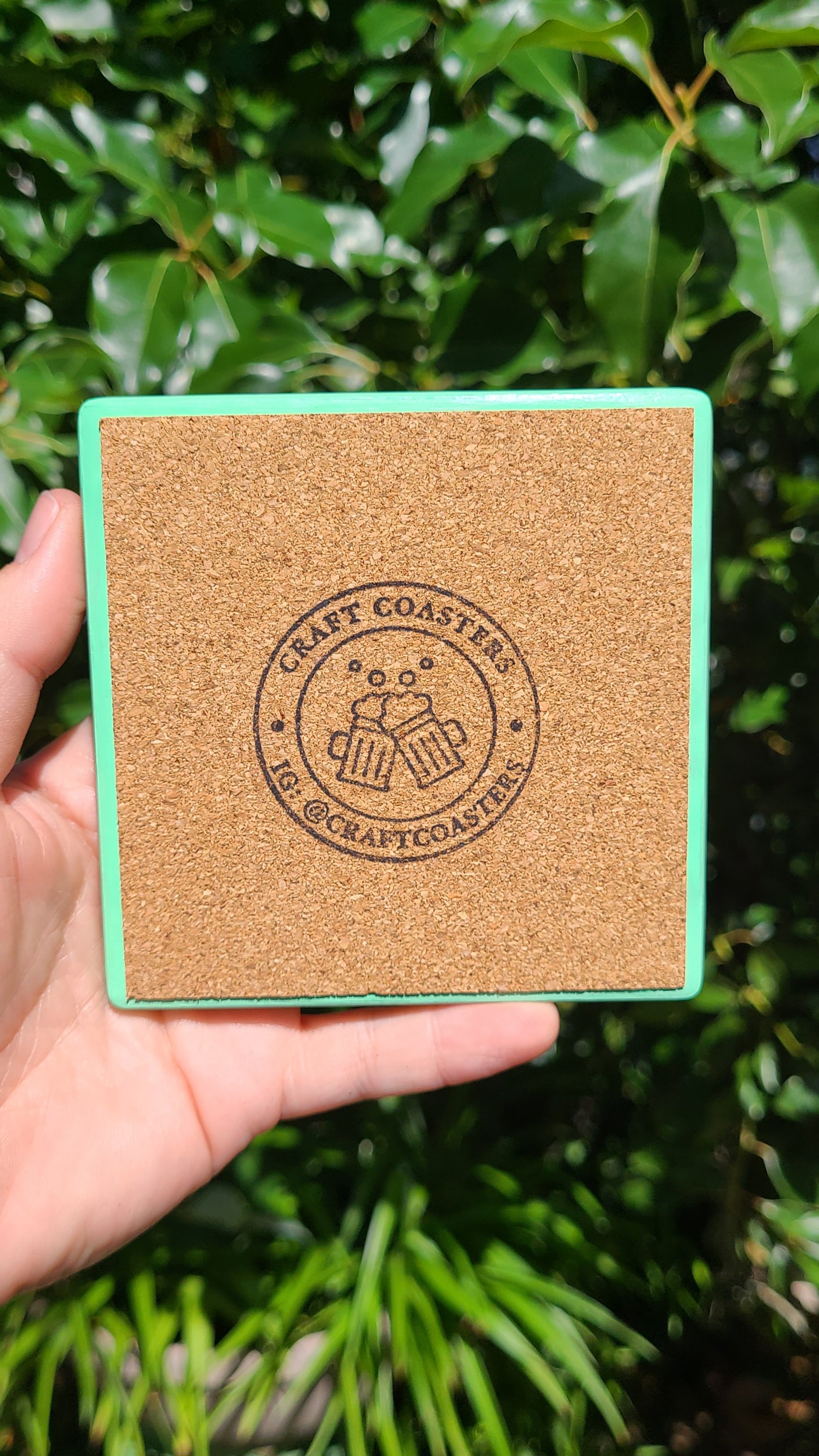 Item is equipped with a cork backing and stamped with the "Craft Coasters" logo.