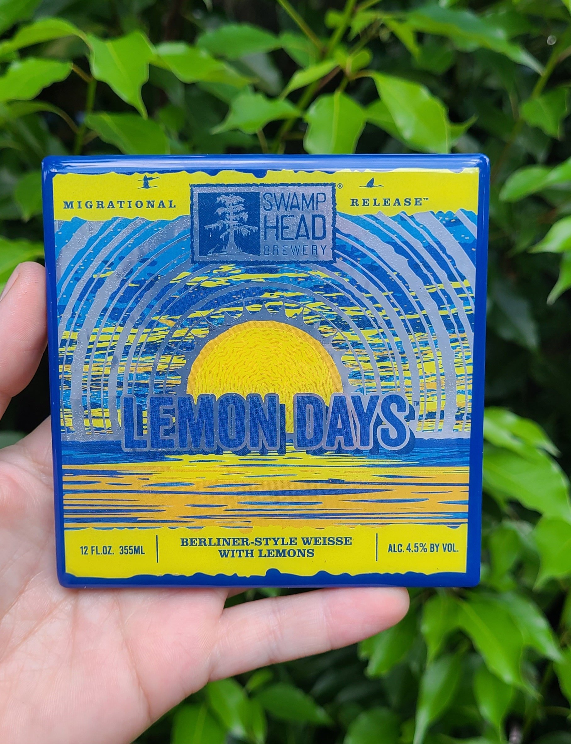 This coaster features Swamphead Brewings "Lemon Days" label art.